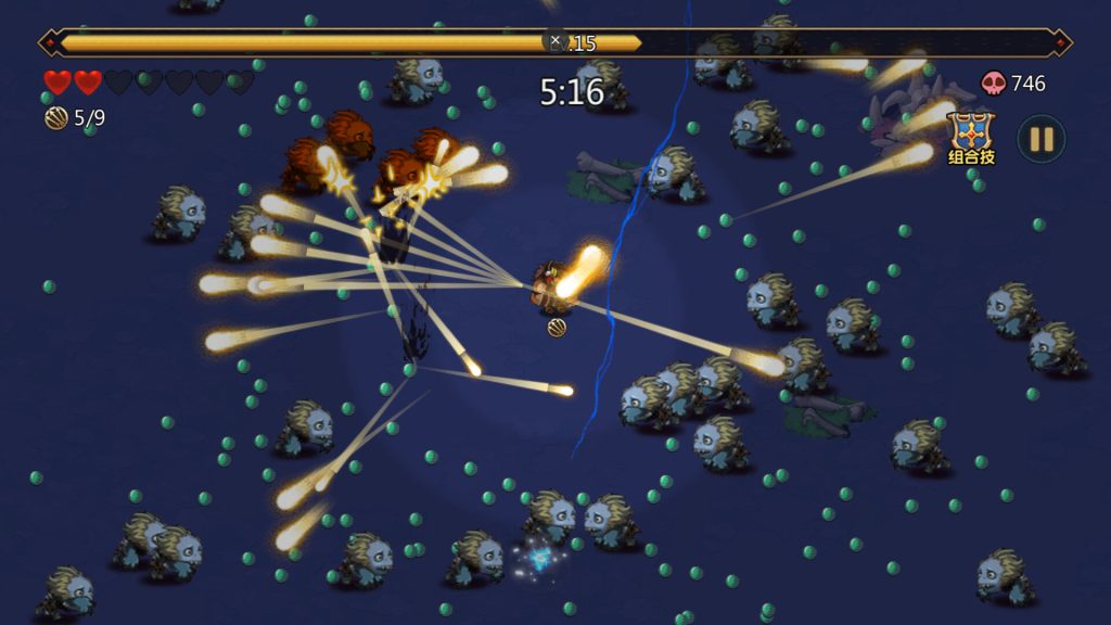 本作是一款轻松上手却富有策略深度的弹幕射击生存游戏。你将化身英雄,在源源不绝的亡灵狂潮中杀出血路,击败强大的亡灵Boss,守护人类最后的圣光!