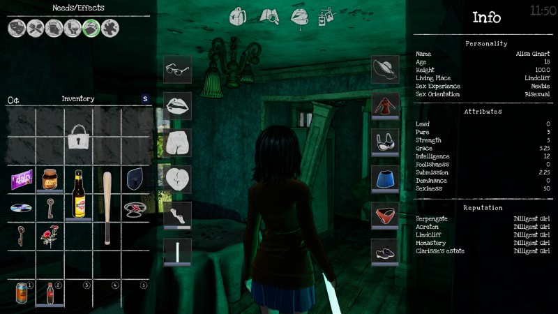 - 包含丰富的性向/外观数值:体液覆盖、服装性感度;以及肛门、阴道、乳头等部位的技巧/敏感度/状态等。