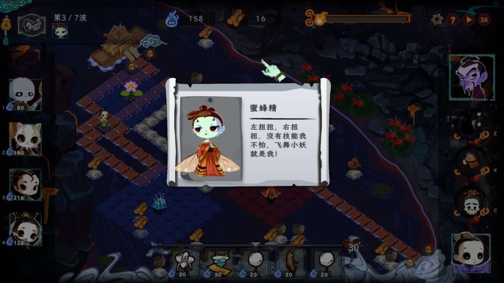 一款中国古代地府主题的塔防独立游戏, 玩家能用锚点的方式即刻改变路径,并自由建塔。 针对塔单位,玩家可以投入药草熬制忘忧汤,以增强不同塔的数值、效果, 并在路径上自由放置符咒陷阱,辅助抗敌。 游戏内涵盖不同大小的关卡地图、初始路径挑战、不同效果的障碍物等, 影响玩家的策略规划。