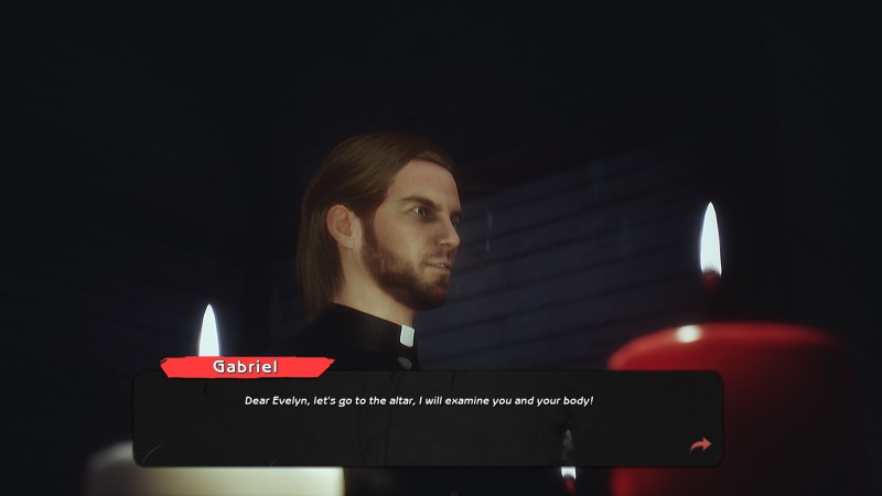 雨夜,教堂的钟声响起,一个略带湿透的女孩,名叫伊芙琳,还有圣父加布里埃尔,准备以各种姿势为罪人忏悔