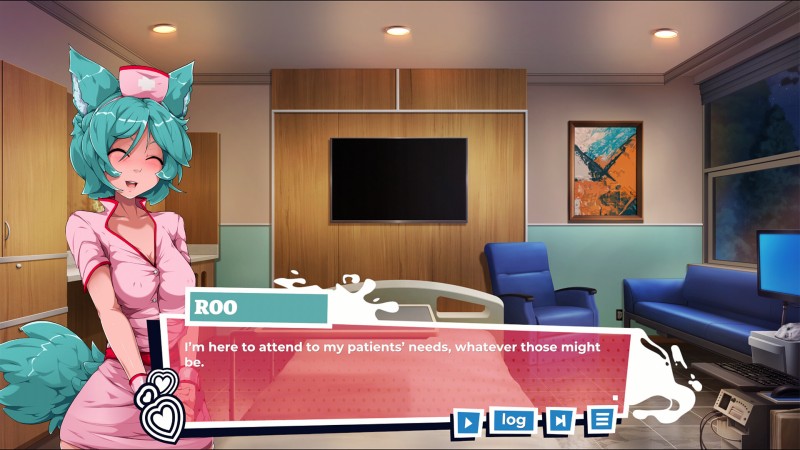 在圣爱洛斯医院,你遇见了半人种(这个世界称为”混生族”)护士露。她毛茸茸的立耳与蓬松长尾衬得亲和力十足,是你入住波特阿凡特镇结识的第一位居民。这位可爱的护士不仅细心照料你的伤势,更致力于用”任何必要方式”让你的住院时光变得妙不可言……