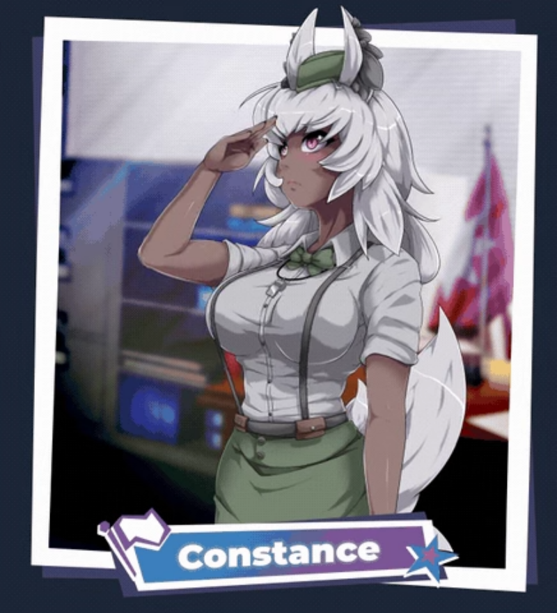 注意了,新居民!波特阿凡特镇需要你!你是否愿意响应号召?也许你来到这座小镇时从未想过参军,但康斯坦丝必定会扭转你的想法!这位活力满溢的犬系混生族姑娘虽然笨手笨脚,却充满热忱,决心不惜一切争取你加入队伍!现在立刻趴下,给她做20个俯卧撑!很快你就会发现,她擅长吹奏的可不止是哨子而已。