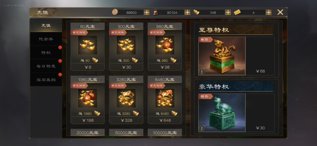 ★游戏内充值全部0.05折,特权解锁无限资源每日再领3280充值卡!三国霸业起步即巅峰