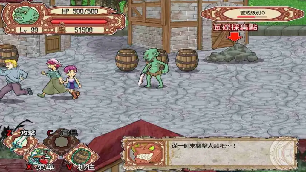 这是一款反传统的2D横版卷轴动作游戏,在这里玩家不再继续扮演无敌的勇者去打败魔王或恶龙,而是扮演邪恶、贪婪、卑鄙的哥布林。你要闯入有卫兵和勇者把守的村镇,与装备精良、武技高超的勇者们斗智斗勇,绑架村民监禁在据点的地下监狱,把他们作为恶魔仪式的祭品,等待哥布林大王的复活。