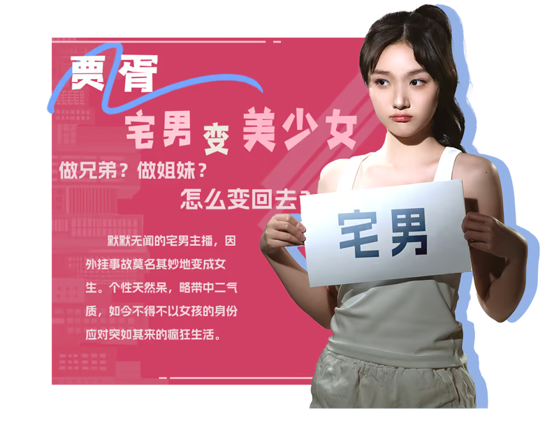 贾胥(蛋蛋):默默无闻的宅男主播,因外挂事故莫名其妙地变成女生。个性天然呆,略带中二气质,如今不得不以女孩的身份应对突如其来的疯狂生活。