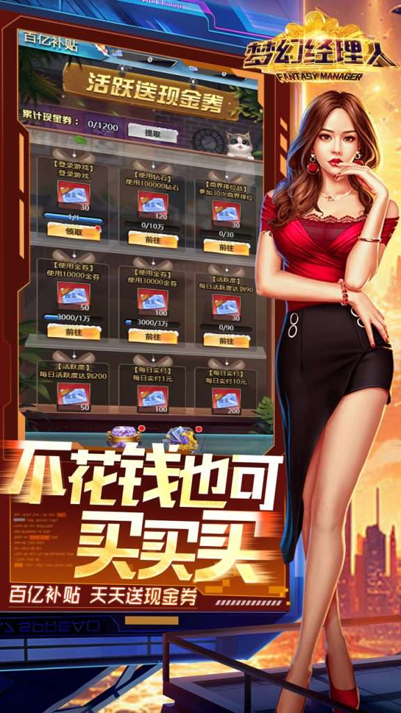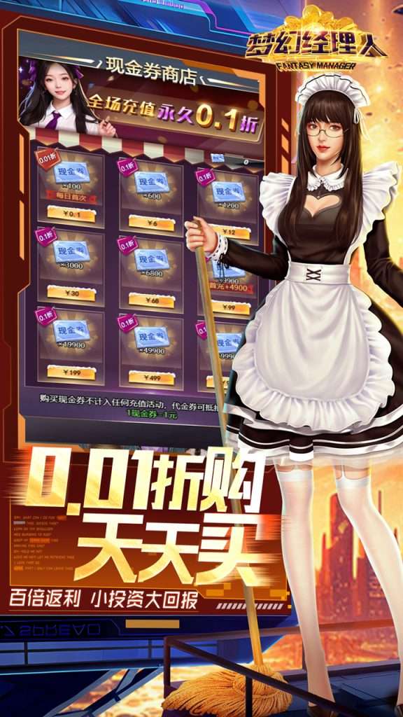 爆款游戏 《梦幻经理人(0.1谁是首富2)》,数值不变,充值1元却相当于原本充值100元 ,每天还有抵用券,0元即可爽玩。