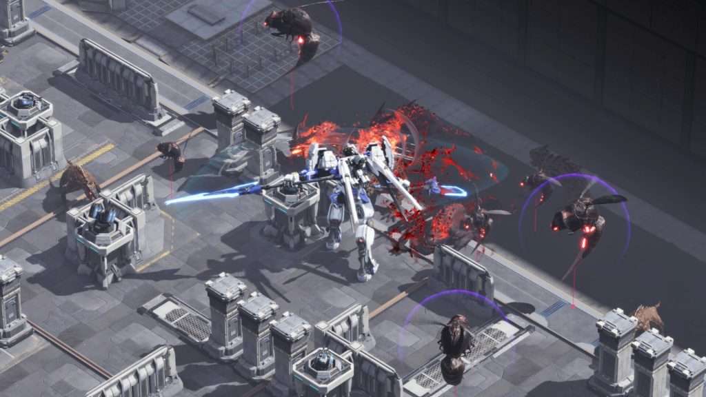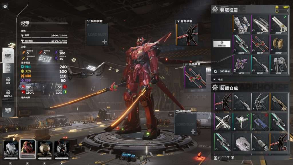 从大量装载库中进行挑选,将由多种星甲组成的「狮鹫」小队武装到牙齿。每把装载都有独特的输出方式与作战风格,特定的装载搭配还会激活”连携技能”,如同时装备”极寒”重剑和”T12″推进装置时将激活”重剑突袭”连携技能