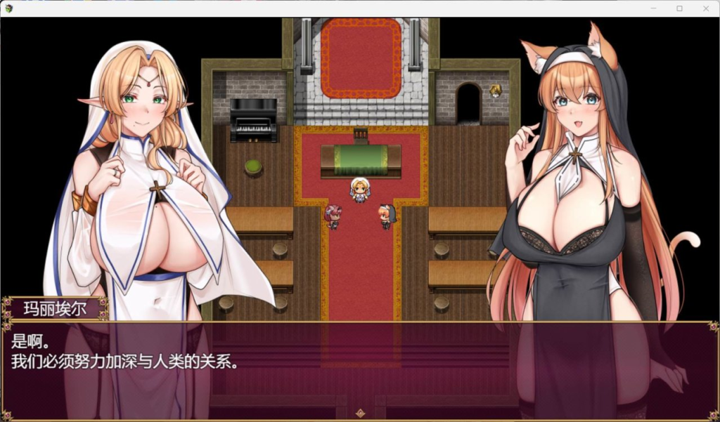 姐妹修女陷落探索RPG人类与异种族联盟之战结束,半个世纪过去了。人类与其他种族之间的鸿沟仍然很深,但为了加深与人类的关系,异种族修女被派往人类城市。被派遣的异种族修女【艾丽卡】和女主角们通过与人类的H交流,逐渐沉溺于快乐之中。