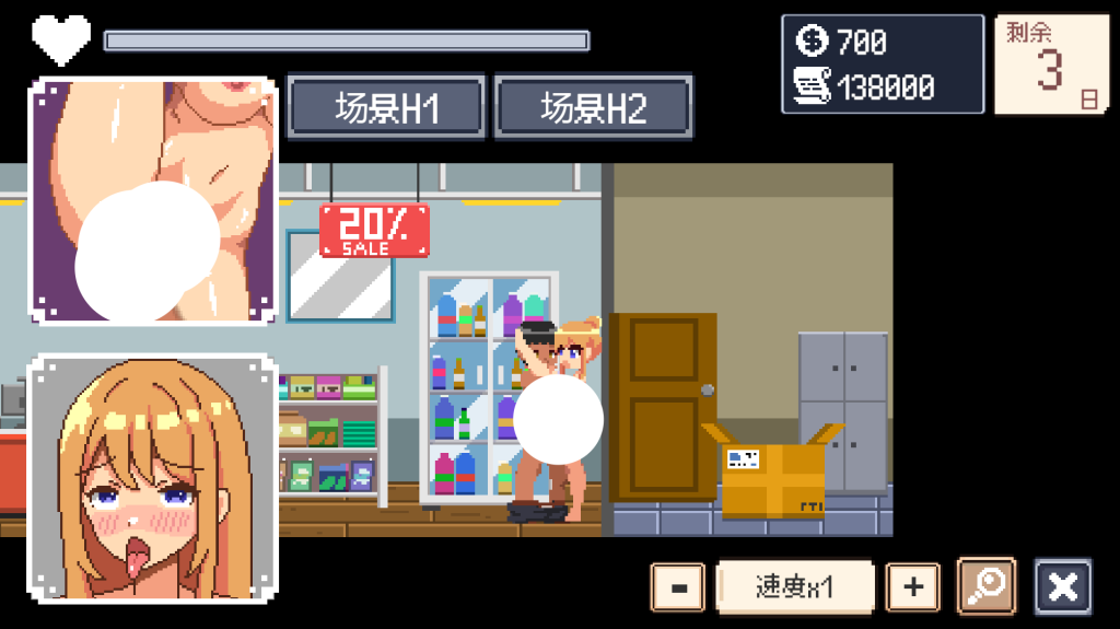 游戏内容=【像素沙盒互动SLG+机翻+PC电脑+像素Live2D动态H+无码+触摸互动按摩+日常打工生活,打工失败会被H+女主视角欠债卖春还款】
