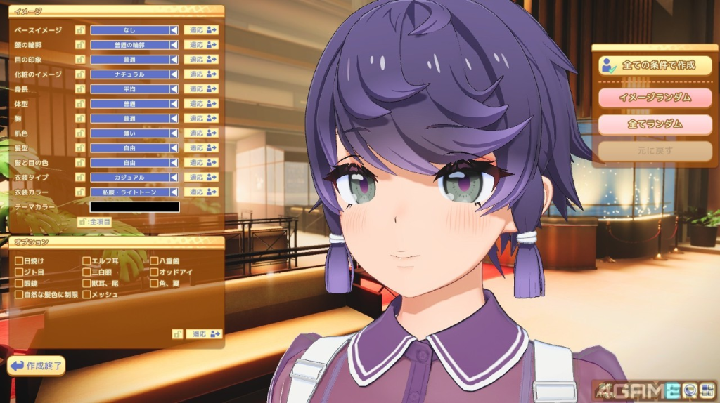 如果玩家不擅长捏角,游戏也提供了让玩家选择角色印象再随机出外观的方式,而且分得蛮细,可以让玩家随机到相近的感觉后再用手去微调,比起《Honey Select》有非常大的进步,虽然人家说两个作品没有关系…