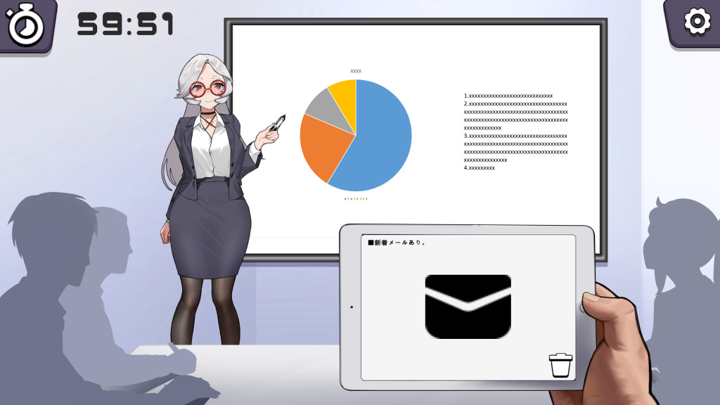 点击邮件就会显示操作APP,用它来操作部长的玩具吧。 (如果删除那封邮件的话,就正常进行会议吧。