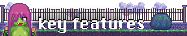 – 手绘的像素艺术和动画场景。